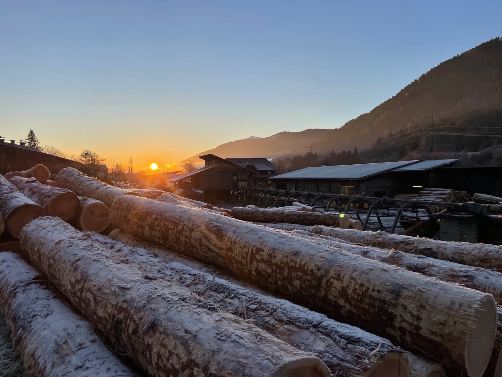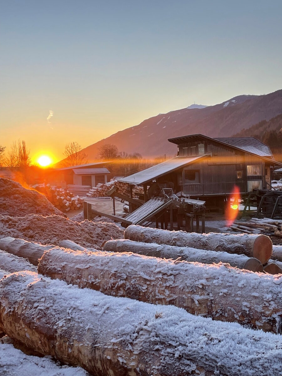 Der Winter hat unser Sägewerk fest im Griff: Schnee, klare Morgen und der Sonnenaufgang über dem Gelände sorgen für besondere Eindrücke, die wir gern mit Ihnen teilen. Die Bilder zeigen einen ruhigen Moment – bevor es wieder mit vollem Einsatz weitergeht.